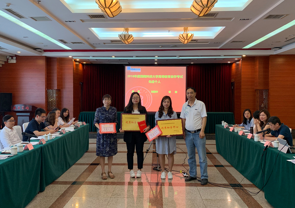 会上还对获得我校2018年度自学考试优秀助学中心云南工商学院、昆明工业职业技术学院和先进个人曾革、刘丽华、曾颖进行了表彰。优秀助学中心代表进行了工作经验交流。