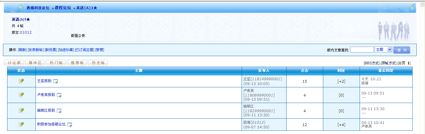 6、“答疑论坛”,是学生与教师以及其它同学交流的地方,学生可以发布新帖,也可以跟帖教师或其它同学的发帖,参与课程讨论或向教师提问。对于主干课程,学生发帖或跟帖的情况将计入平时成绩。